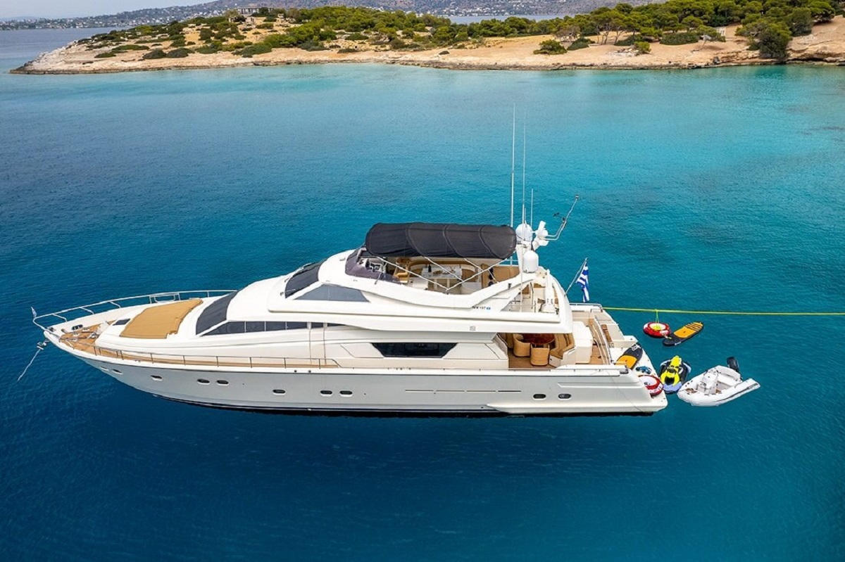 Motor yacht BELLAS BOY is a 24.38 m (80') Ferretti flybridge yacht built in 1997 and beautifully maintained since, with her latest refit being in 2024. She boasts a great family layout for up to eight guests in four suites with an on-board crew of four.
