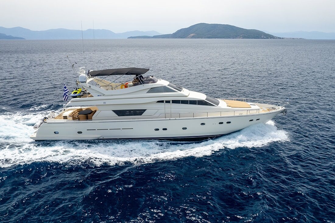 Motor yacht BELLAS BOY is a 24.38 m (80') Ferretti flybridge yacht built in 1997 and beautifully maintained since, with her latest refit being in 2024. She boasts a great family layout for up to eight guests in four suites with an on-board crew of four.