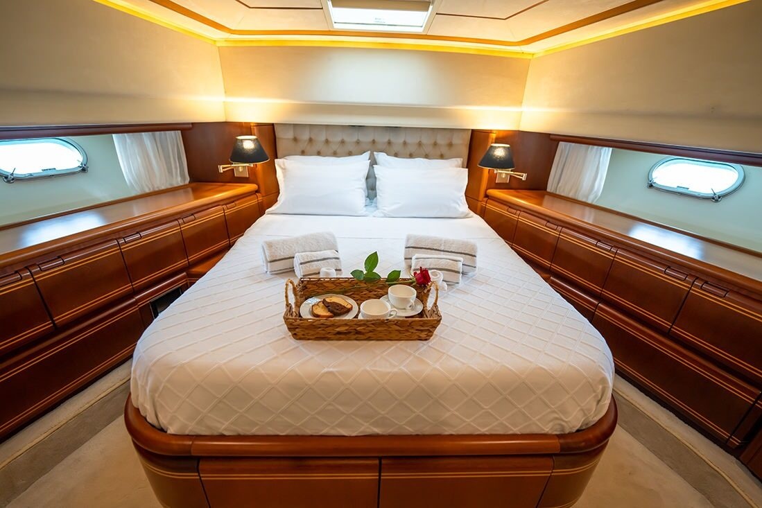 She boasts a great family layout for up to eight guests in four suites with an on-board crew of four.