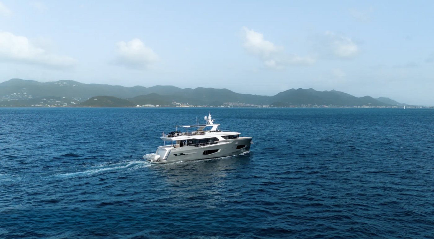 She presents with an imposing profile, plum bow and open flybridge and can accommodate up to eight guests in four suites. Four crew members are on board throughout the charter to deliver professional service to guests.