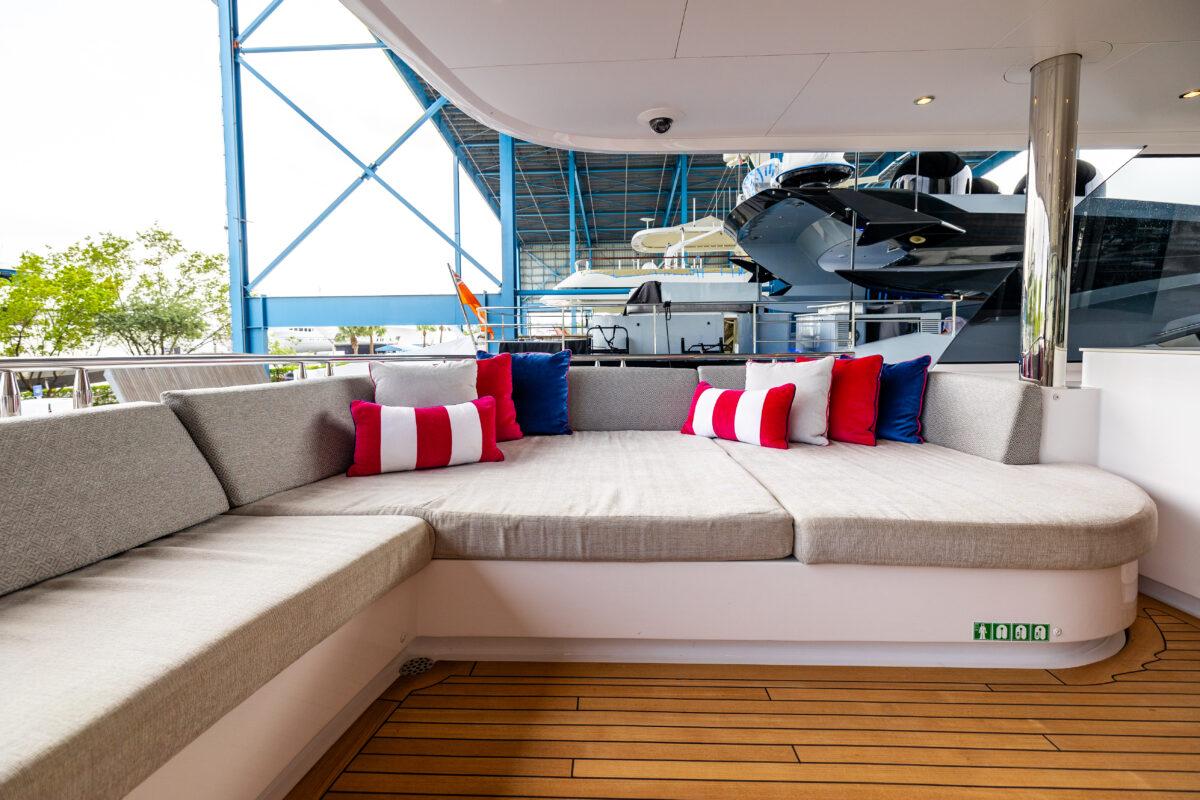 With a length of 48.77 m (160') she presents with a classic navy and white profile and offers sensational deck spaces, water toys and two jacuzzis. Accommodation is for up to 12 guests in six staterooms and the yacht is crewed by ten professionals.