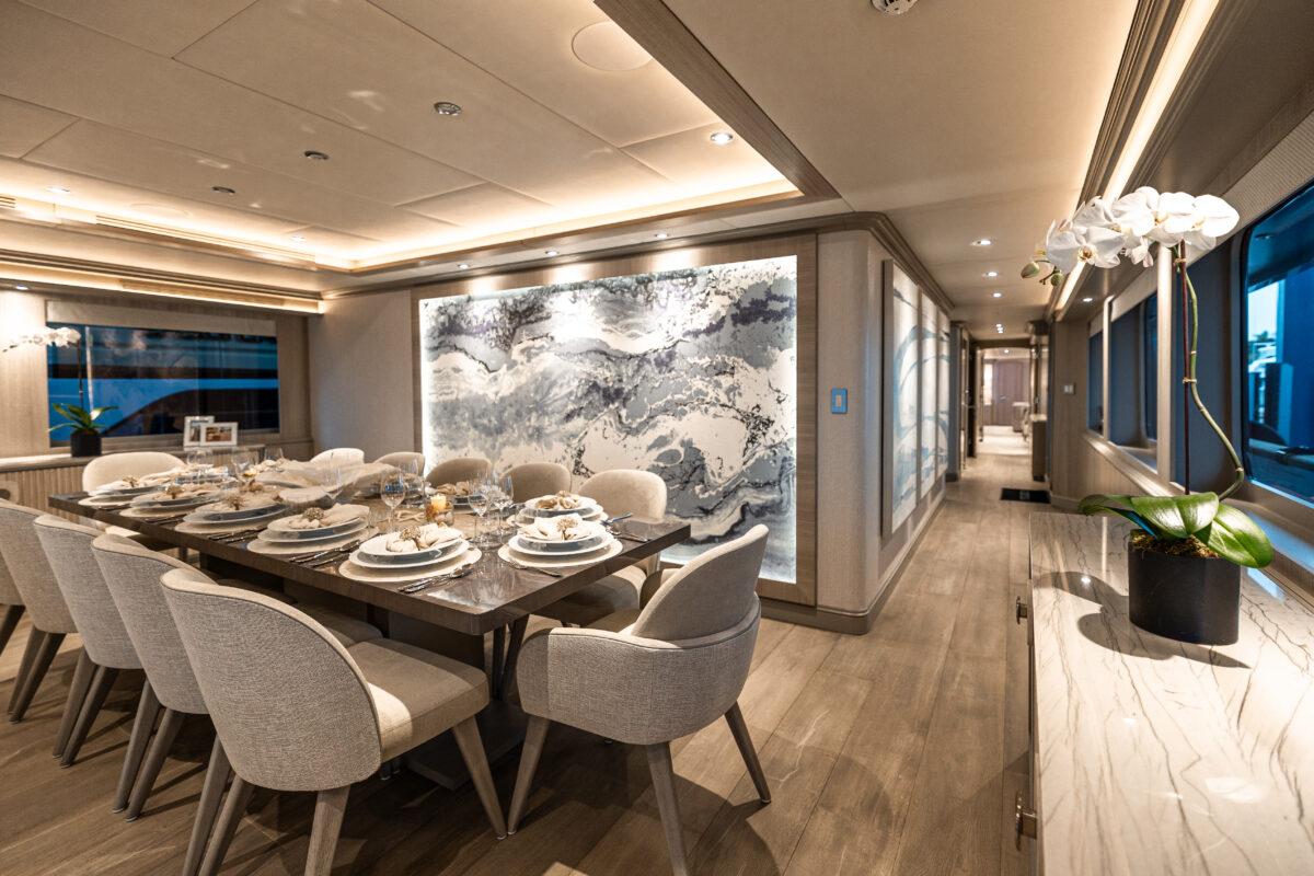 On the bridge deck there is another dining setting, plus a wraparound sofa hugging the bulwarks – great views of ...
