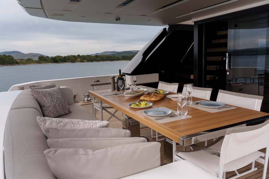 Unlike many yachts of this size, the asymmetric design also allows the lounge and dining in the main salon to starboard and port respectively freeing up the forward zone of the main deck for the master suite.