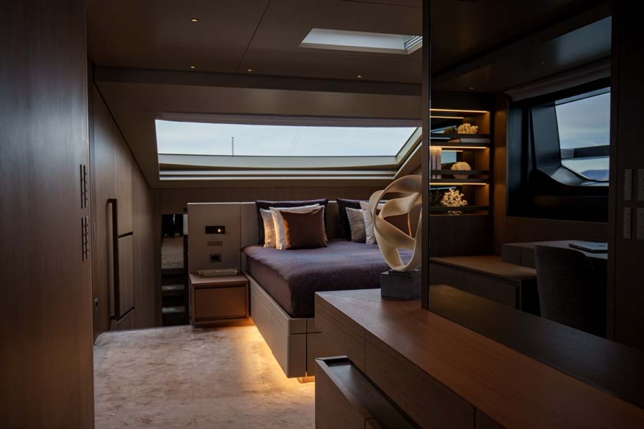 She can accommodate up to 11 guests in five suites plus additional cabins for four crew members.