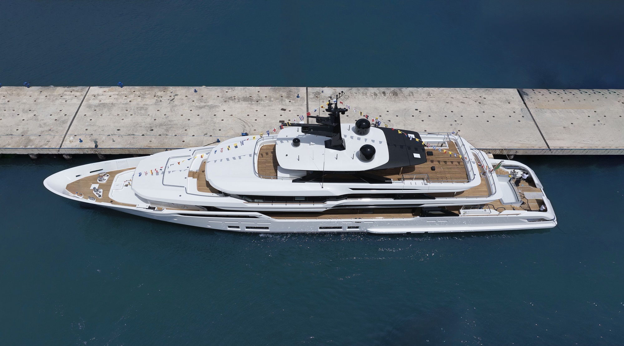She boasts seamless interconnection between the interior and exterior spaces across her four deck levels. Accommodation is across a five-stateroom layout including a luxury upper deck master and four lower deck VIP suites.
