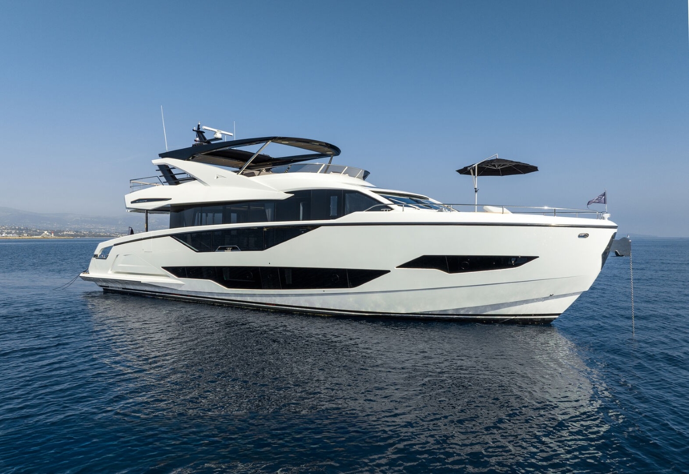 The main deck aft is configured as a cosy lounge under the shelter of the flybridge overhang and boasts another unique feature: a huge aft facing double sun bed which is created from the reverse side of the transom door when it is opened - X-TEND™. A section of the swim platform is hydraulic creating a great water toy dock.