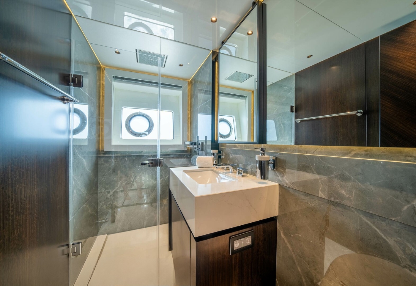 The master includes a deluxe vanity area, lounge space and stylish ensuite bathroom with double sinks, separate show and head. The VIP also boasts a lovely vanity area and ensuite bathroom while the convertible suites are spacious with high-end ensuite bathrooms.
