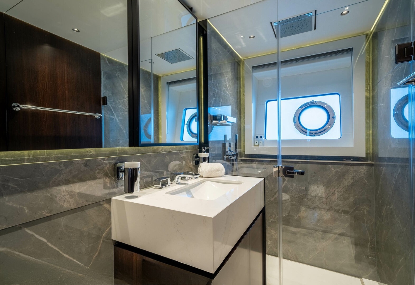 The master includes a deluxe vanity area, lounge space and stylish ensuite bathroom with double sinks, separate show and head. The VIP also boasts a lovely vanity area and ensuite bathroom while the convertible suites are spacious with high-end ensuite bathrooms.