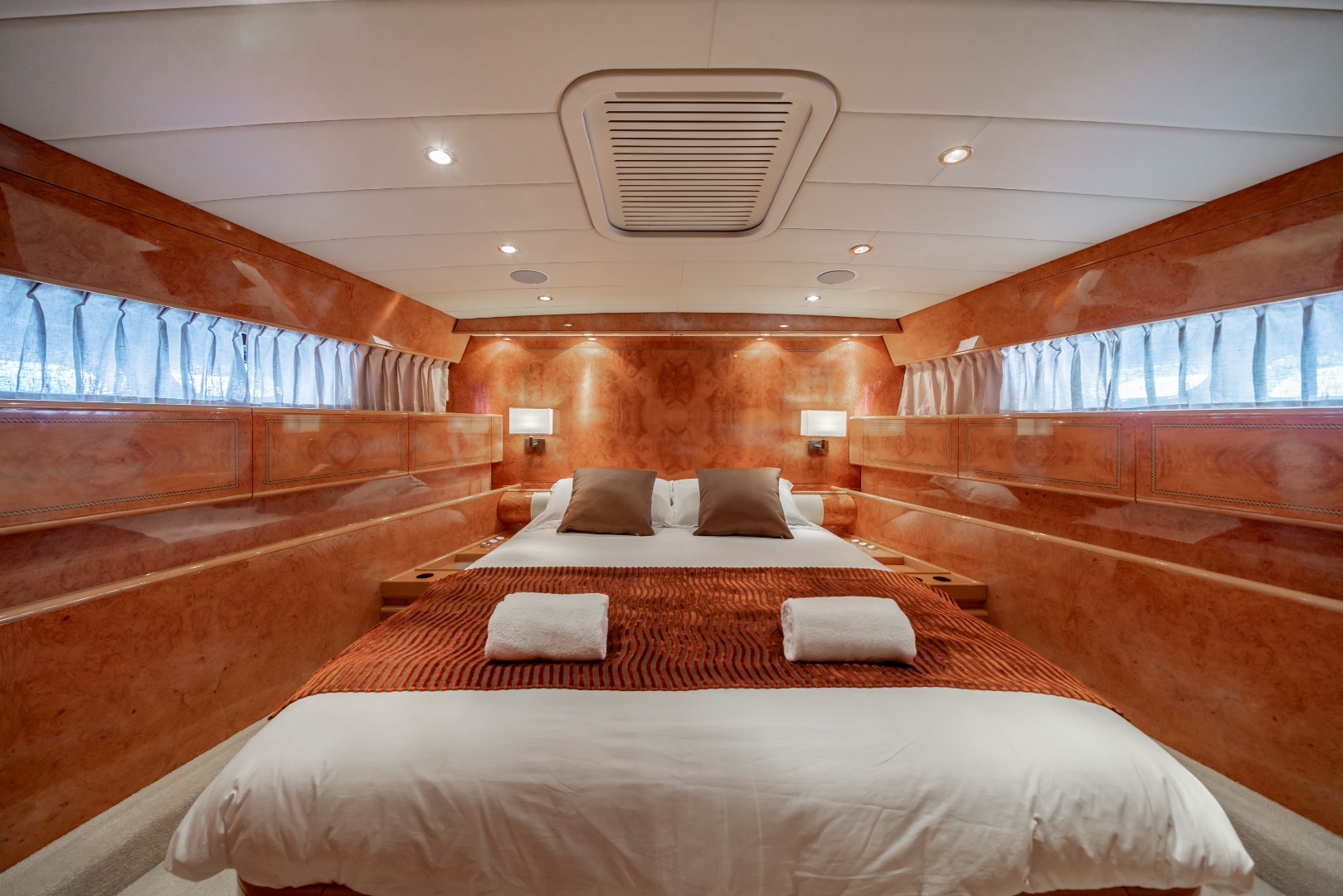 There are three double cabins, all with ensuite bathroom facilities. The suites are decorated with warm gloss wood panelling and comfortable soft furnishings.