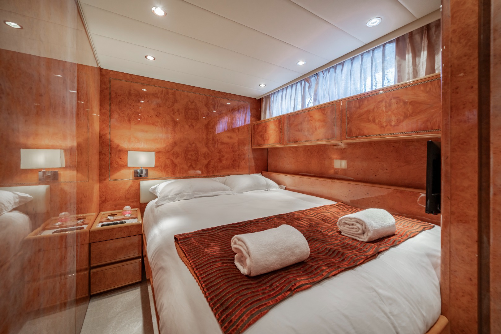 There are three double cabins, all with ensuite bathroom facilities. The suites are decorated with warm gloss wood panelling and comfortable soft furnishings.