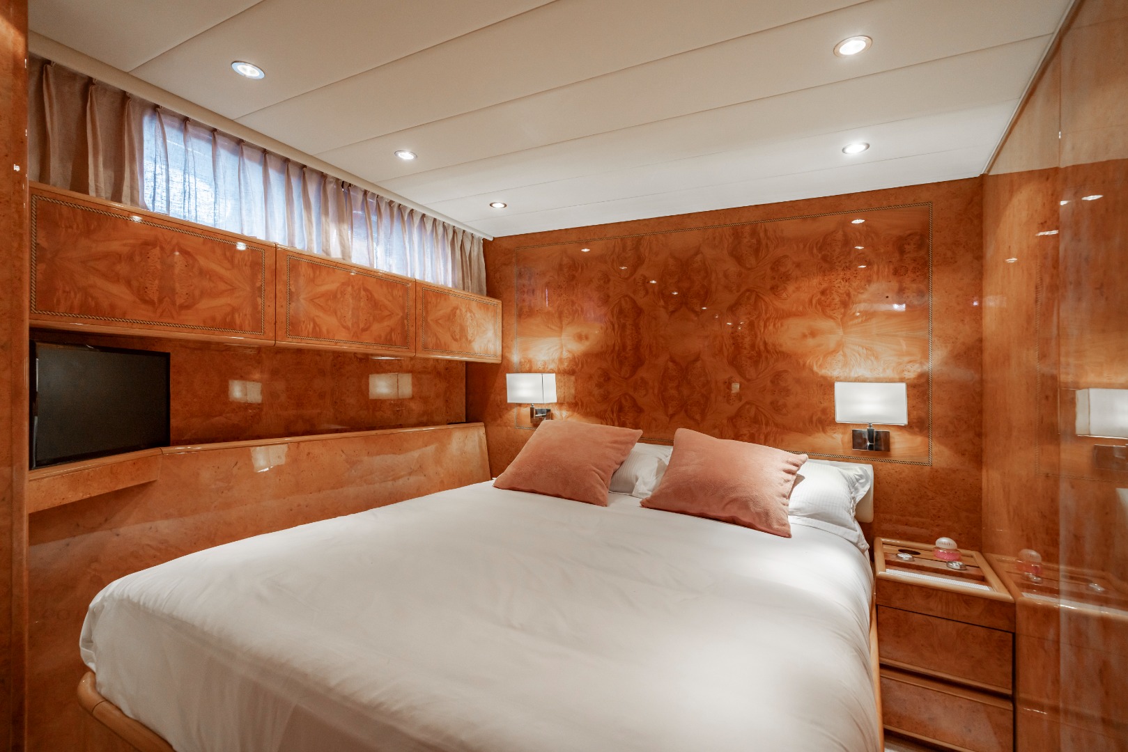 There are three double cabins, all with ensuite bathroom facilities. The suites are decorated with warm gloss wood panelling and comfortable soft furnishings.