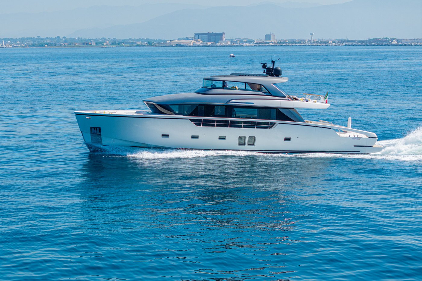 Motor yacht DANIDA is a 26.70m (87' 7") Sanlorenzo flybridge built in 2020 and featuring a spacious flybridge, pristine and contemporary deck furnishings and a bright and airy interior atmosphere. She can accommodate up to eight guests in four light and welcoming ensuite cabins.