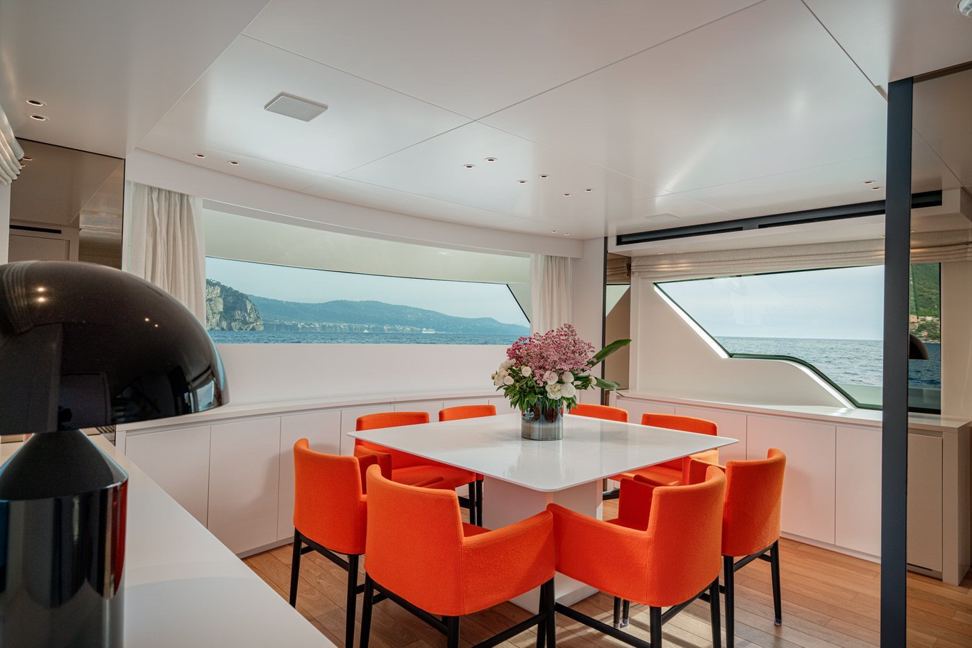 NOTABLE FEATURES OF DANIDA: ~Expansive beach club ~Al fresco dining on the flybridge ~Generous interior with minimal design ~Low fuel consumption ~At anchor and underway stabilisers ~Air conditioning ~WiFi