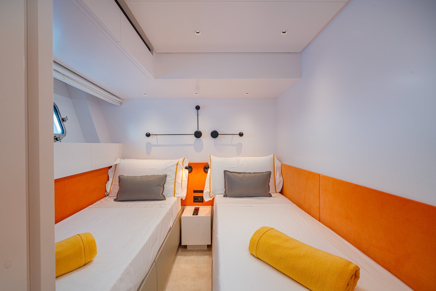 She can accommodate up to eight guests in four light and welcoming ensuite cabins. Four crew members will provide professional service throughout the charter.