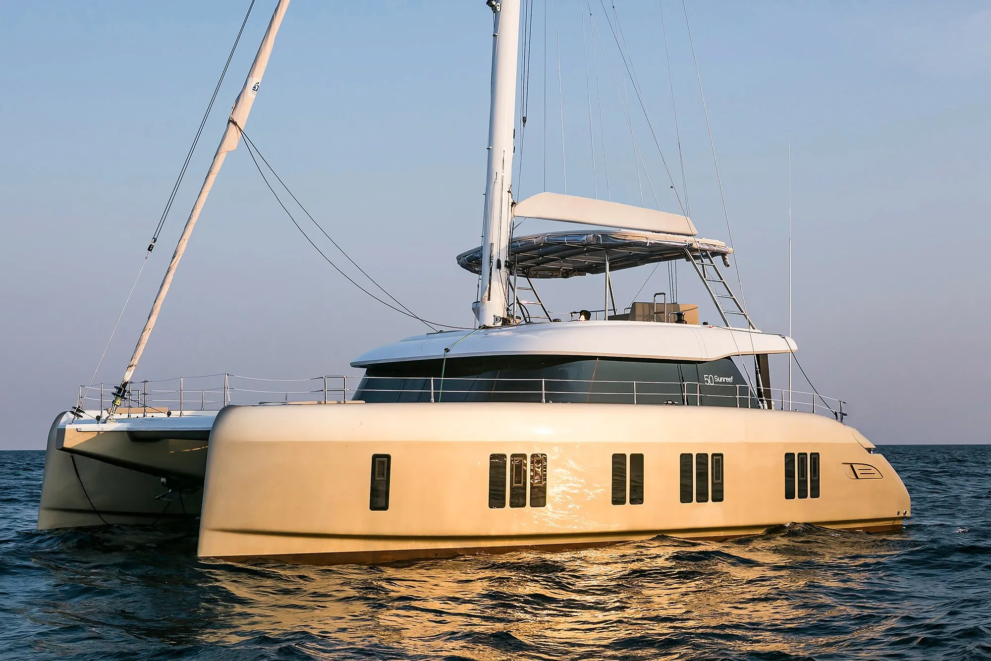 The VIP suites are forward, one in the port and one in the starboard hull with a guest suite aft. All the suites benefit from the luxury and privacy of ensuite bathroom facilities and there are two additional cabins for the crew. The suites also enjoy the same contemporary décor and welcoming atmosphere of the main deck areas.