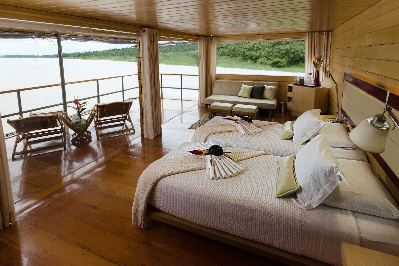 All cabins are outside-facing with seating area and large panoramic windows that enable you to get the "big picture" of the rivers and their banks from the comfort of your cabin. Four of the cabins are interconnecting making it ideal for families. The twin beds can be converted to a California king-sized bed.