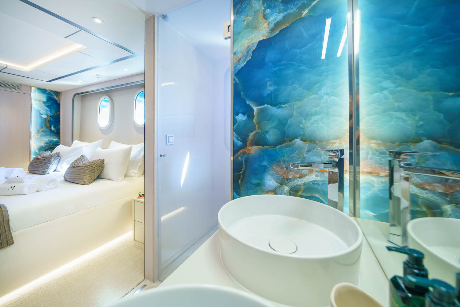Her accommodation spreads over 6 ensuite cabins and sleeps up to 12 guests on board. A dedicated crew of 11 is on hand to provide exceptional service, ensuring a comfortable and memorable experience for all guests.