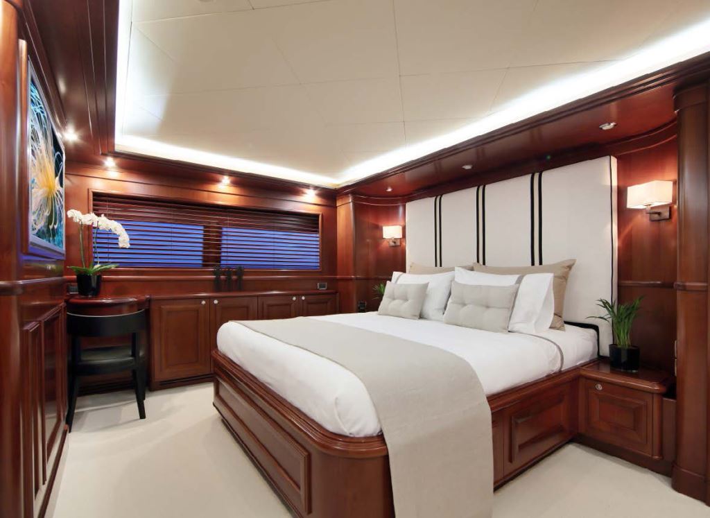 The master cabin also has a Safe, Fridge, Desk, Vanity, 2 Walk-in closets with stylish glass draws and plenty of storage throughout the cabin. There is a Plasma TV (42"), Sat and sky TV decoder, CD and DVD player.