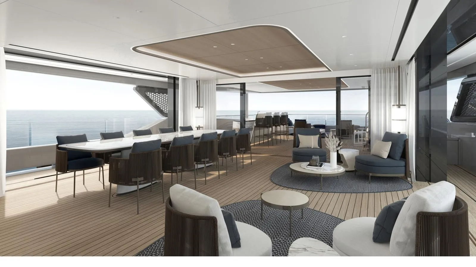 The bridge deck offers a lovely lounge area, and which leads directly from the sky lounge dining room which opens to create one large entertainment space. The main deck aft is a stunning split level beach club which includes an ...