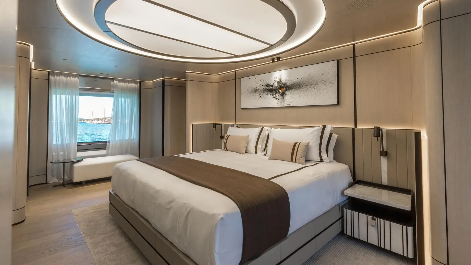The luxury interiors are credited to Enrico Gobbi’s Team for Design and provide a retreat for up to 12 guests, accommodated in six ensuite staterooms. Ten crew members are on board throughout to create a wonderful charter experience for guests.