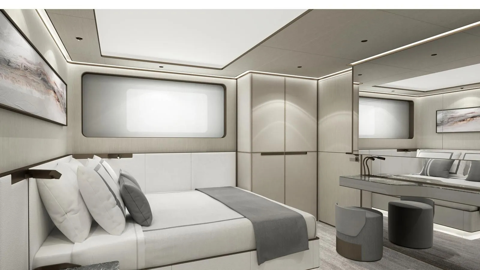 The luxury interiors are credited to Enrico Gobbi’s Team for Design and provide a retreat for up to 12 guests, accommodated in six ensuite staterooms. Ten crew members are on board throughout to create a wonderful charter experience for guests.