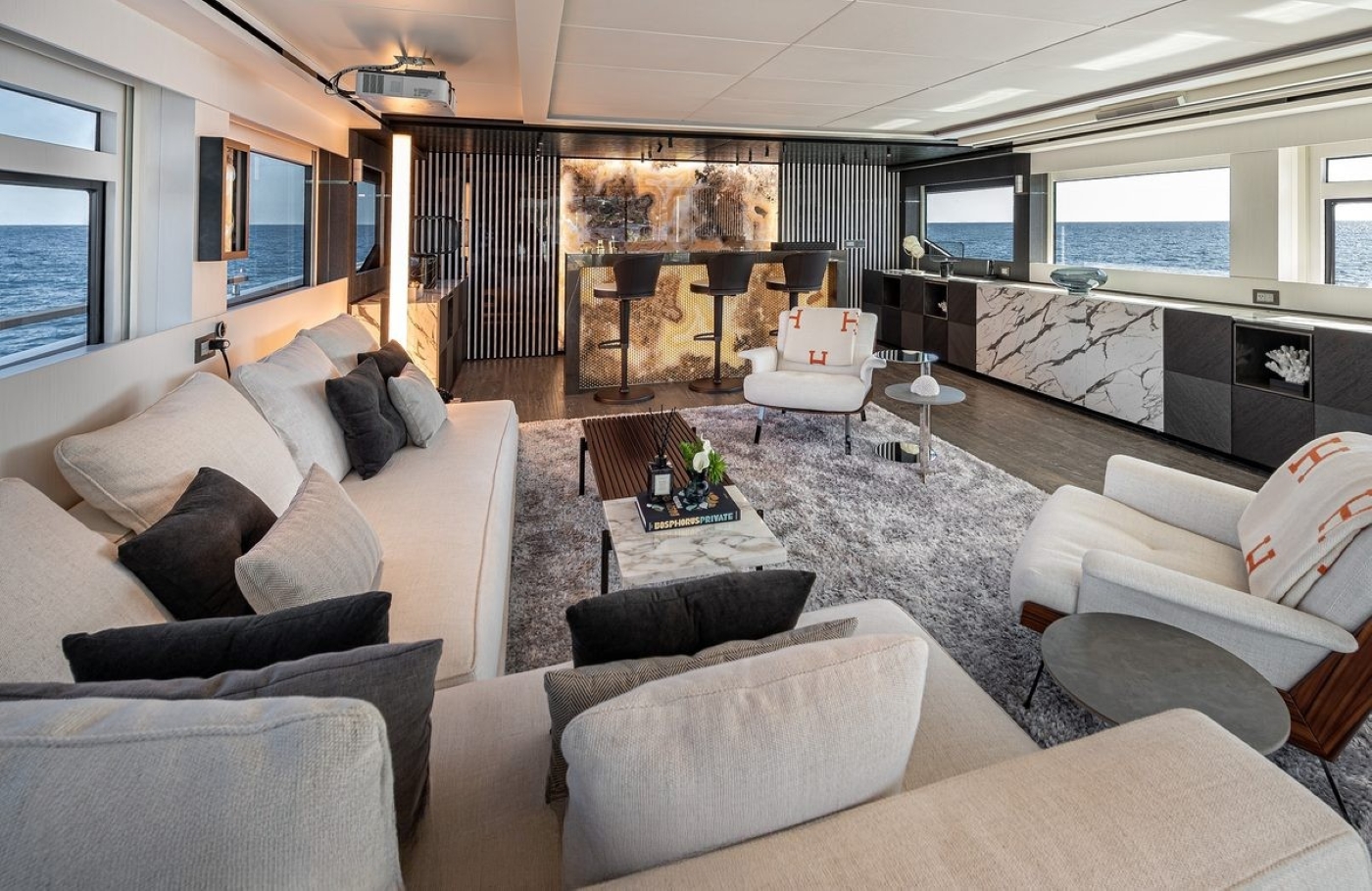 The foredeck on this level offers a different perspective with views over the bow from an arrangement of sun pads and seating.