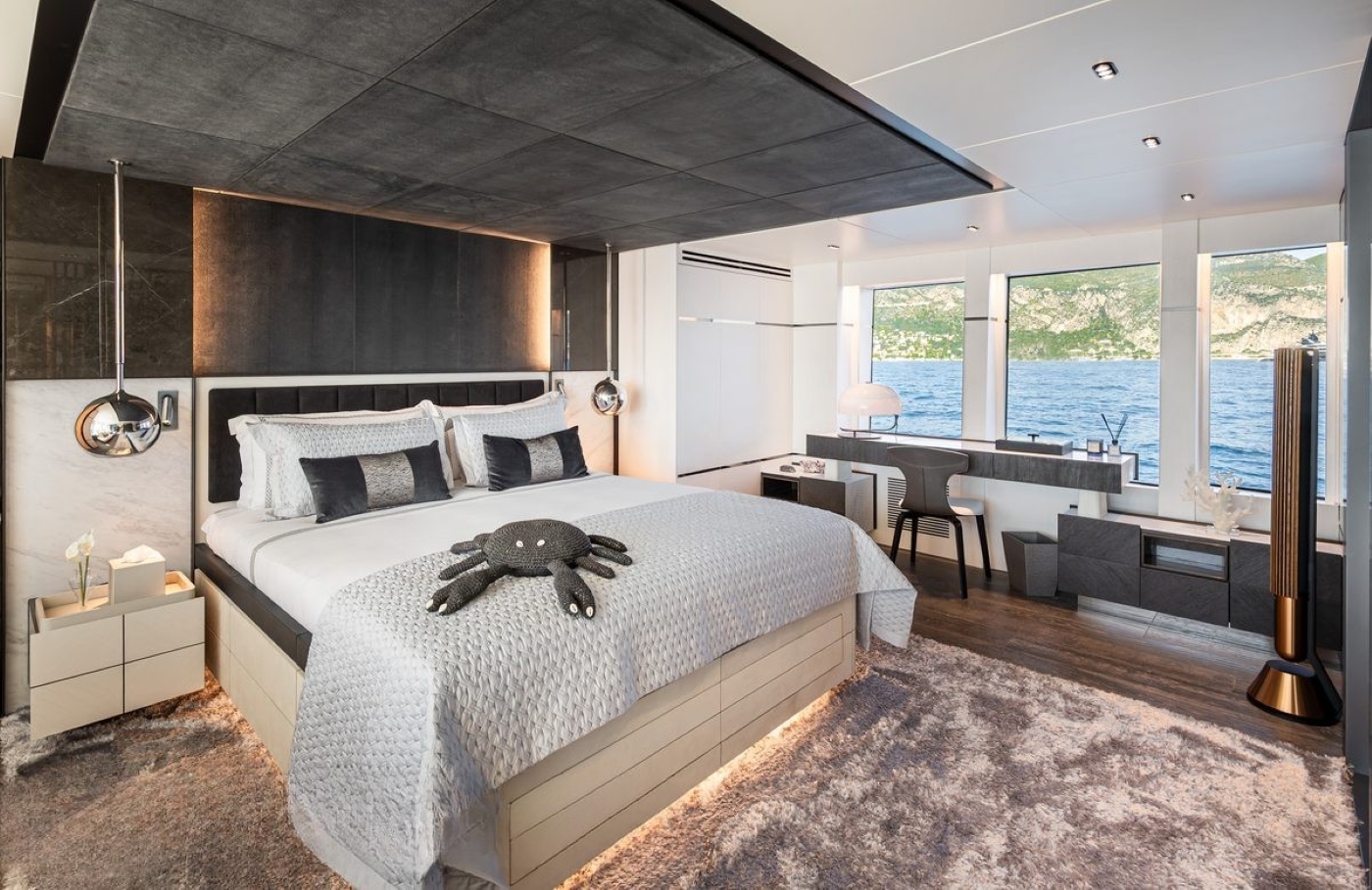 Up to twelve guests can be accommodated in six ensuite staterooms with additional cabins for the seven crew members.