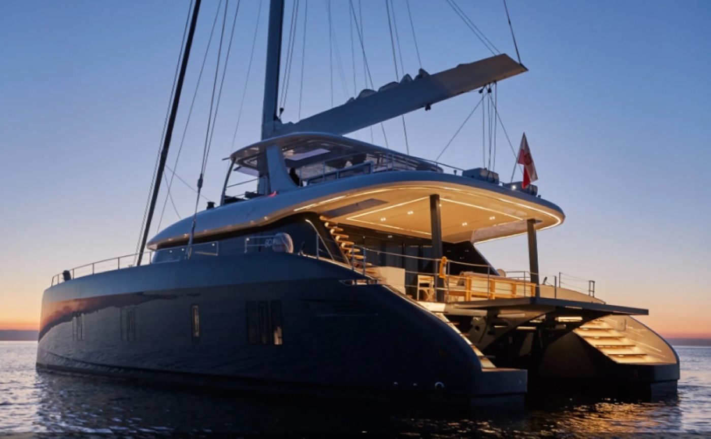 There is a dining setting and sun pads plus doors into the main salon – which when open create one large entertainment space. The foredeck has a sunken lounge with flexible tables and cushions plus two forward trampolines. Guests will benefit from the door leading into the main salon giving great flow around the yacht.