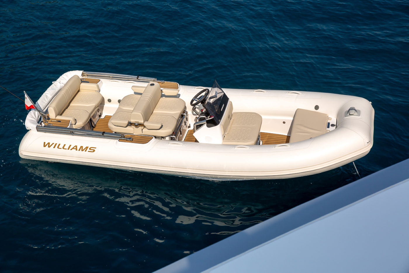 Forward on the main deck is the master suite while the additional guest suites are on the lower deck.
