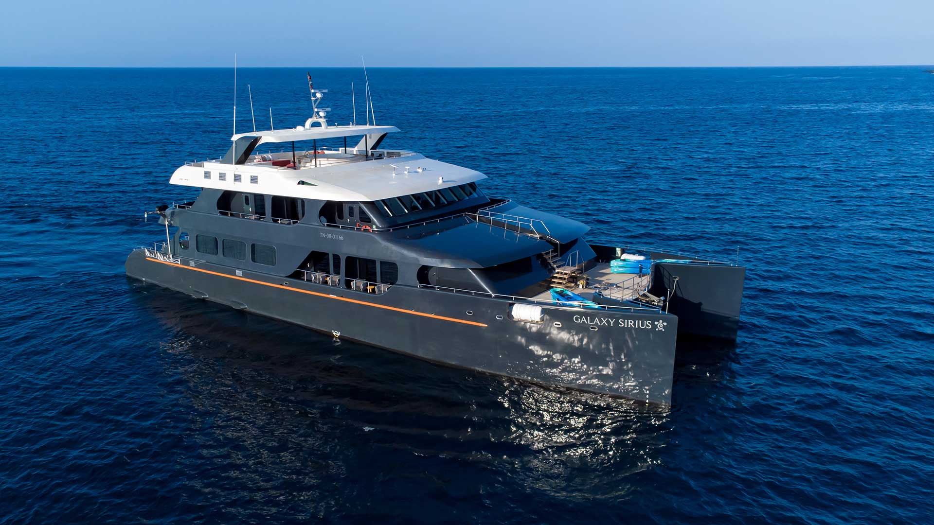 Luxury yacht GALAXY SIRIUS is a custom-built power catamaran with an overall length of 36.00m (118' 1") offering accommodations for sixteen guests in nine suites on charters in the Galapagos. The dedicated crew, including professional nature guides, offer luxury service and activities to make the most of their time on board.