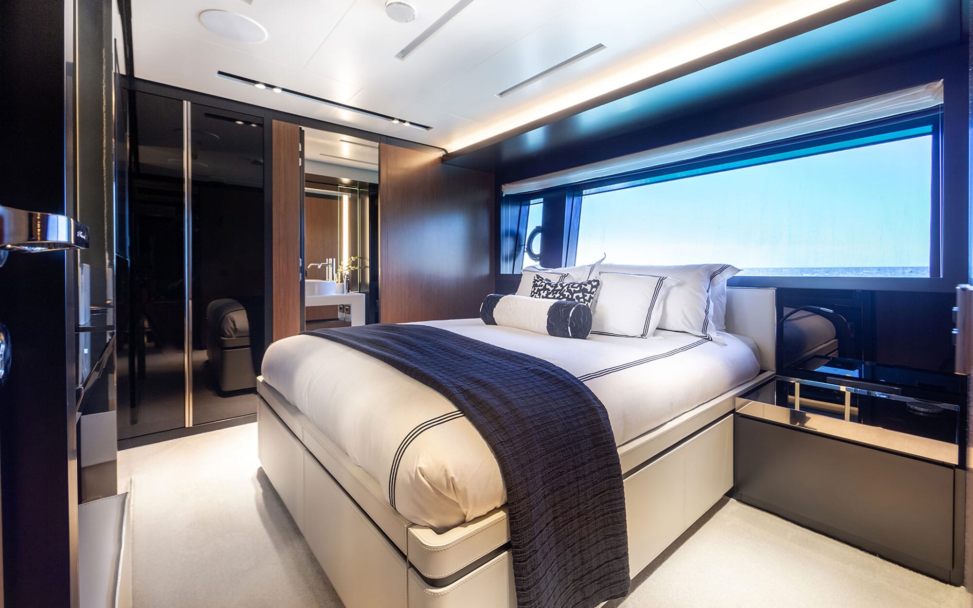 Accommodation is for up to ten guests in five suites with additional cabins for the five crew members.