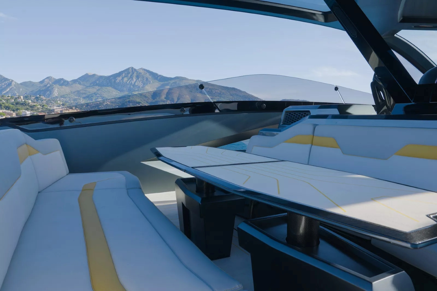 The exterior has a cutting-edge silhouette, completely out of character from typical nautical design schemes.