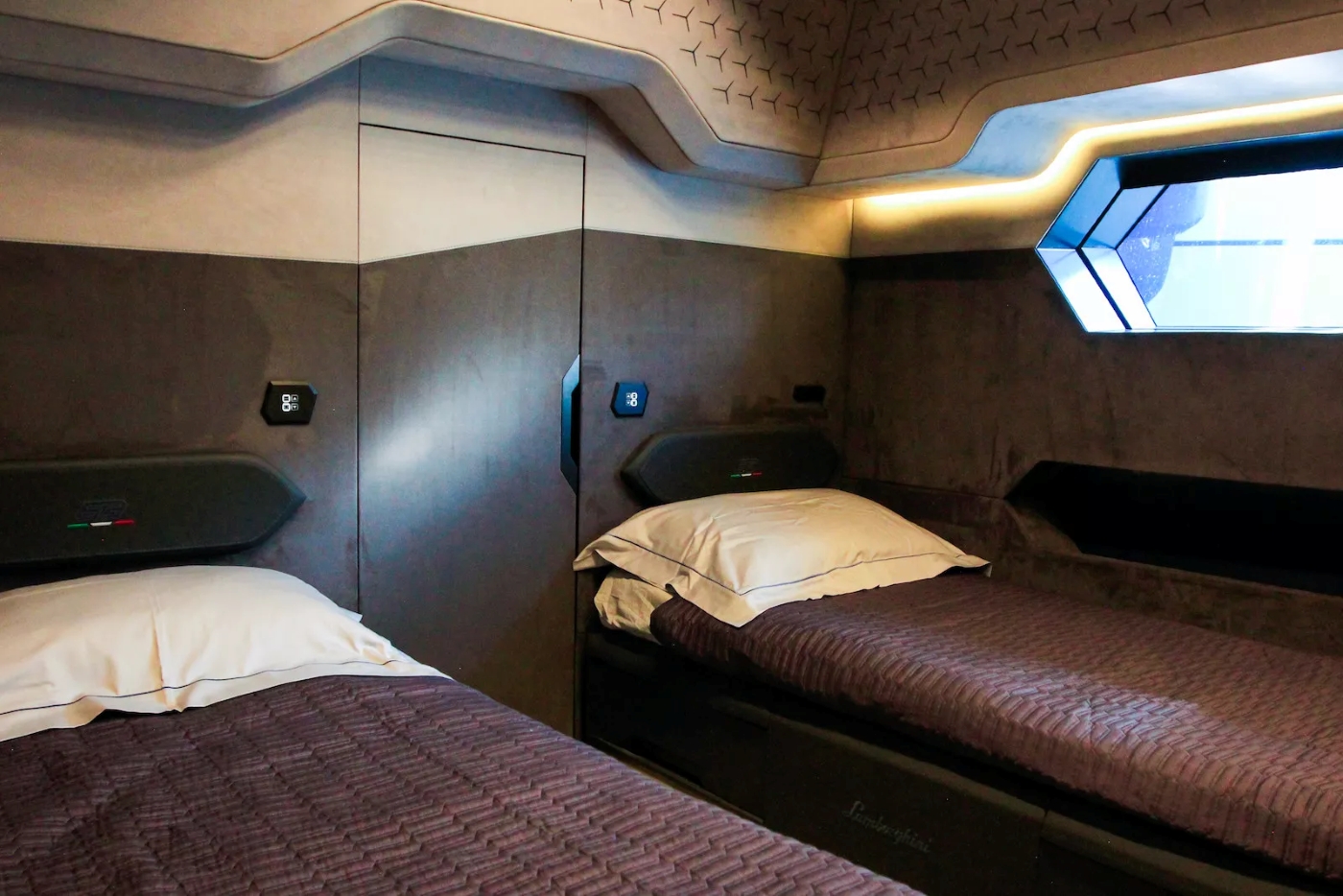 Two independent cabins include a king-sized master cabin at bow and a flexible guest cabin with the possibility of having two singles bed that can be joined together to make a