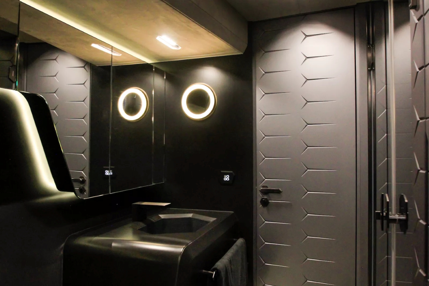 The exterior has a cutting-edge silhouette, completely out of character from typical nautical design schemes.