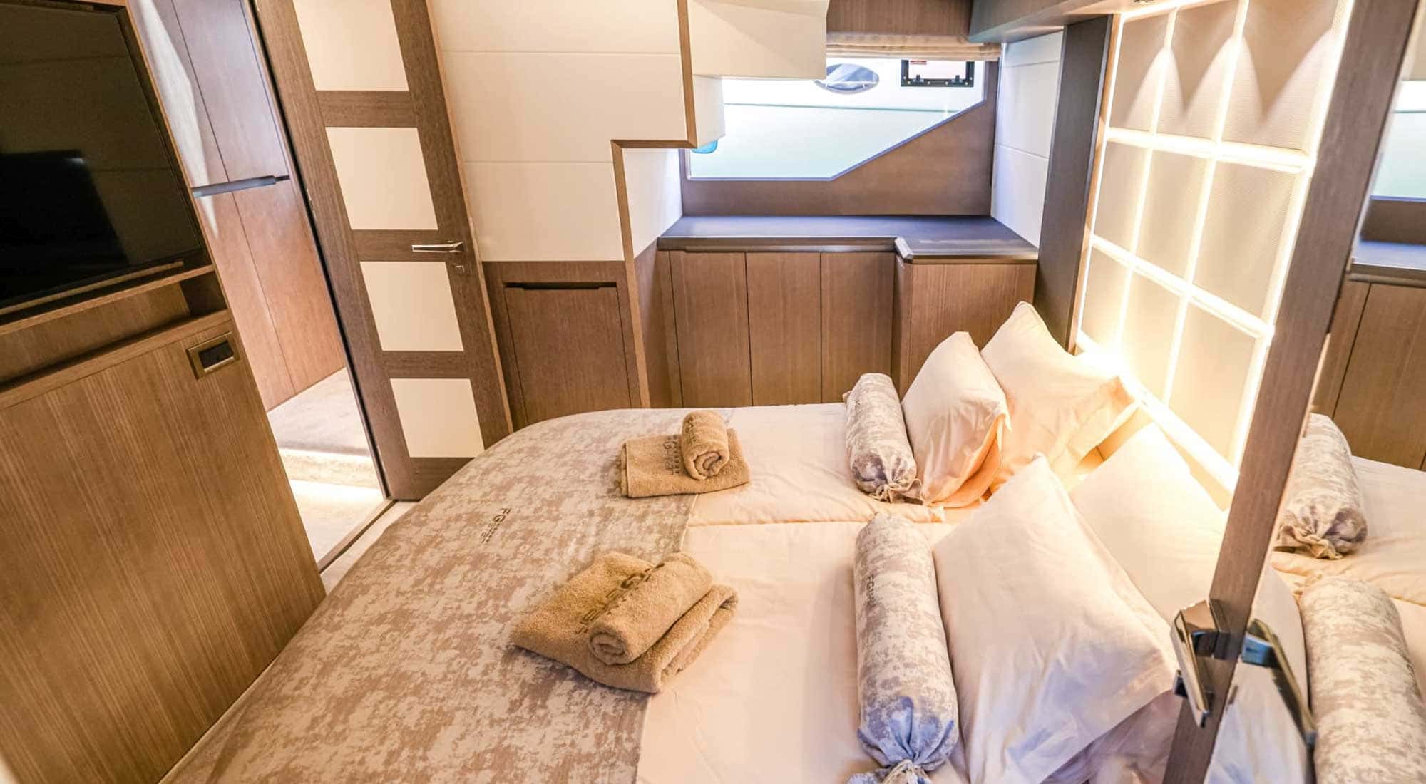 She is 20.80m (68' 3") long with an incredibly shallow draft of 0.99m (3' 3") – meaning she can access the shallowest anchorages. A modern tender, exciting water toys and two crew members ensure any charter will be a great success.