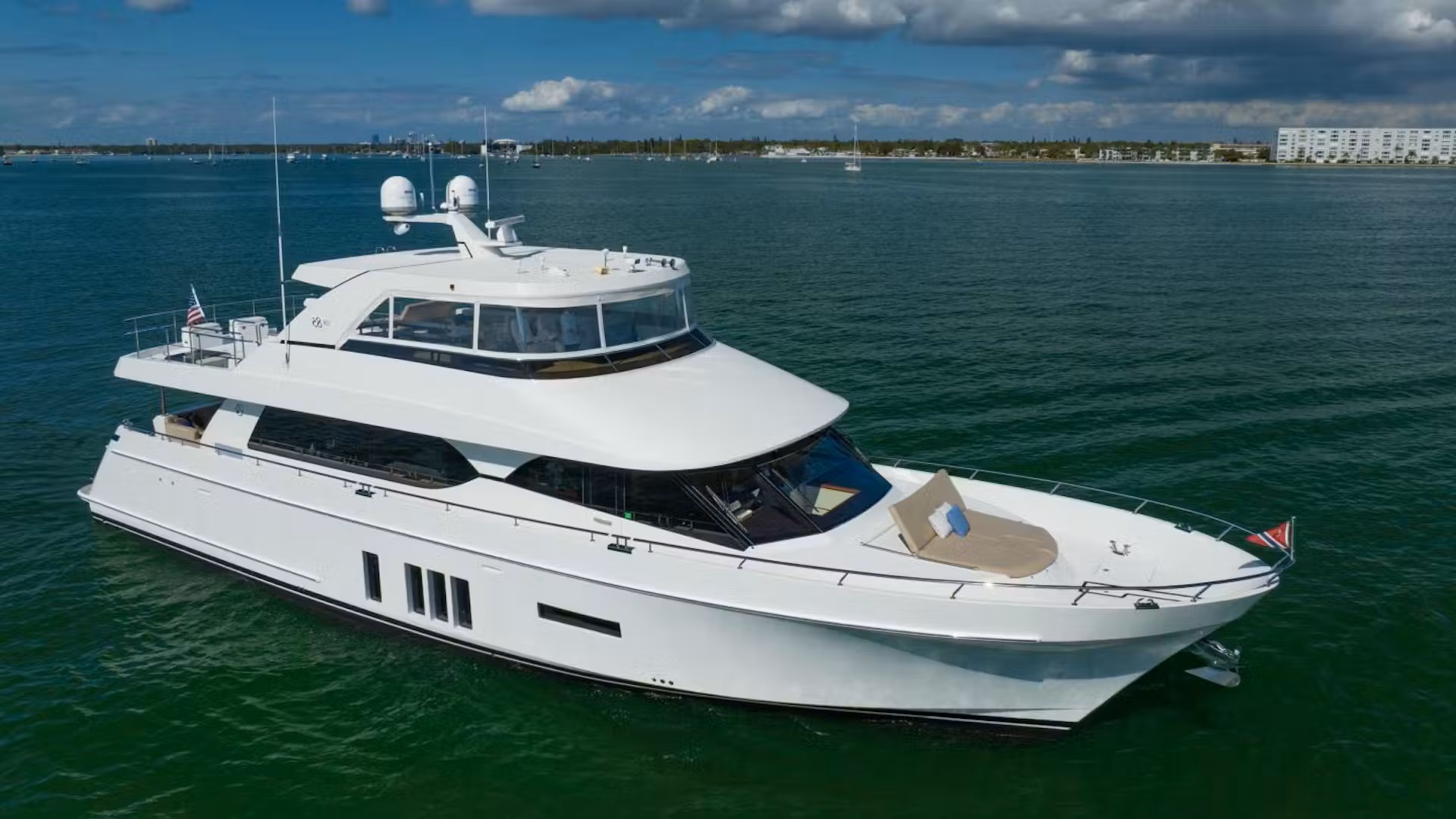 The master suite benefits from his-and-hers ensuites with a central rainwater shower, two walk-in-closets and a seating area. The VIP is forward and includes an ensuite, a walk-around bed and plenty of storage, while the two amidships twins are also ensuite.