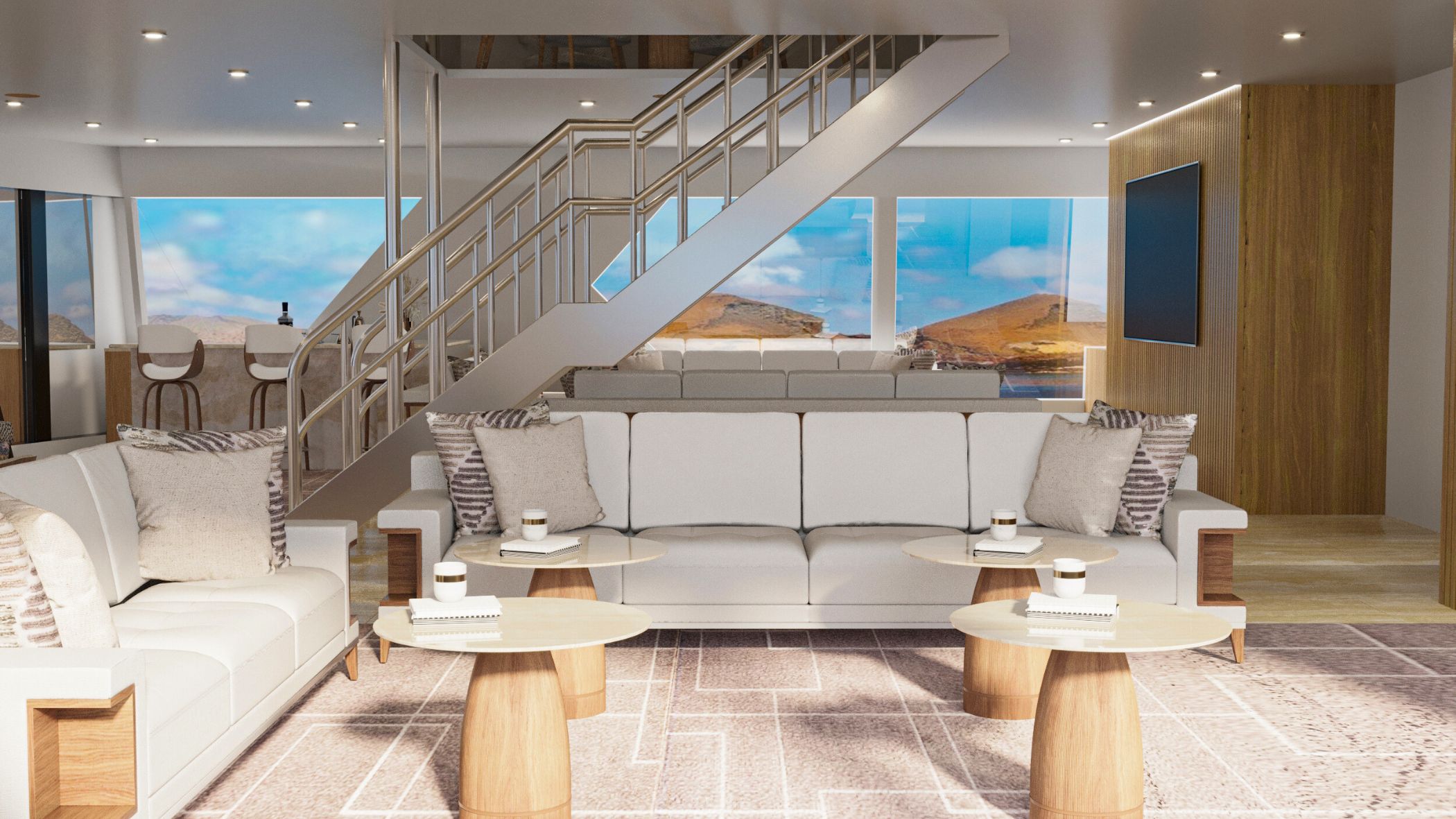 The sun deck offers a relaxing oasis with sun beds and a large jacuzzi. The panoramic/bridge deck is dedicated to al fresco dining with tables and chairs which can be arranged flexibly. This level also offers a large seating area on the foredeck and two wide side decks where guests can view any wildlife sightings.