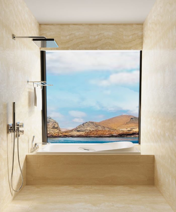There are six guest suites on the upper deck and six on the main deck configured with a choice of twins or doubles all with luxury ensuite bathroom facilities with spa baths overlooking panoramic windows and private balconies.