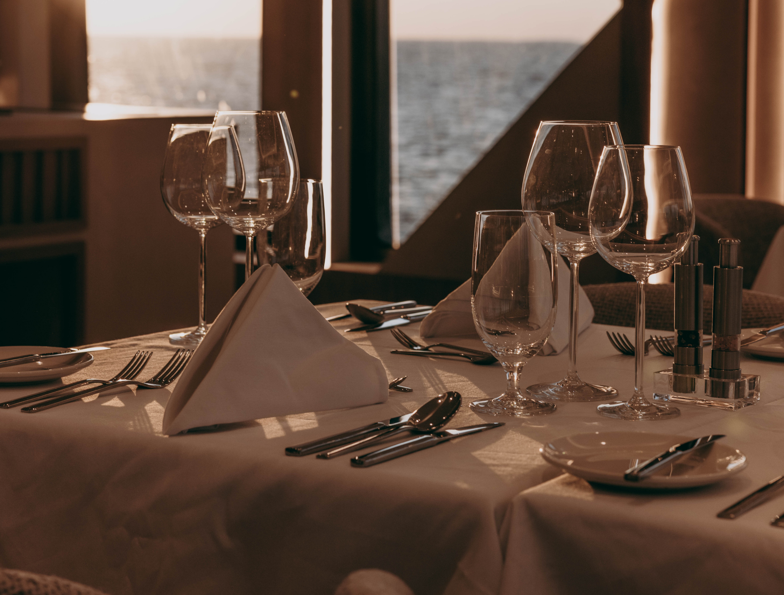 The panoramic/bridge deck is dedicated to al fresco dining with tables and chairs which can be arranged flexibly. This level also offers a large seating area on the foredeck and two wide side decks where guests can view any wildlife sightings.