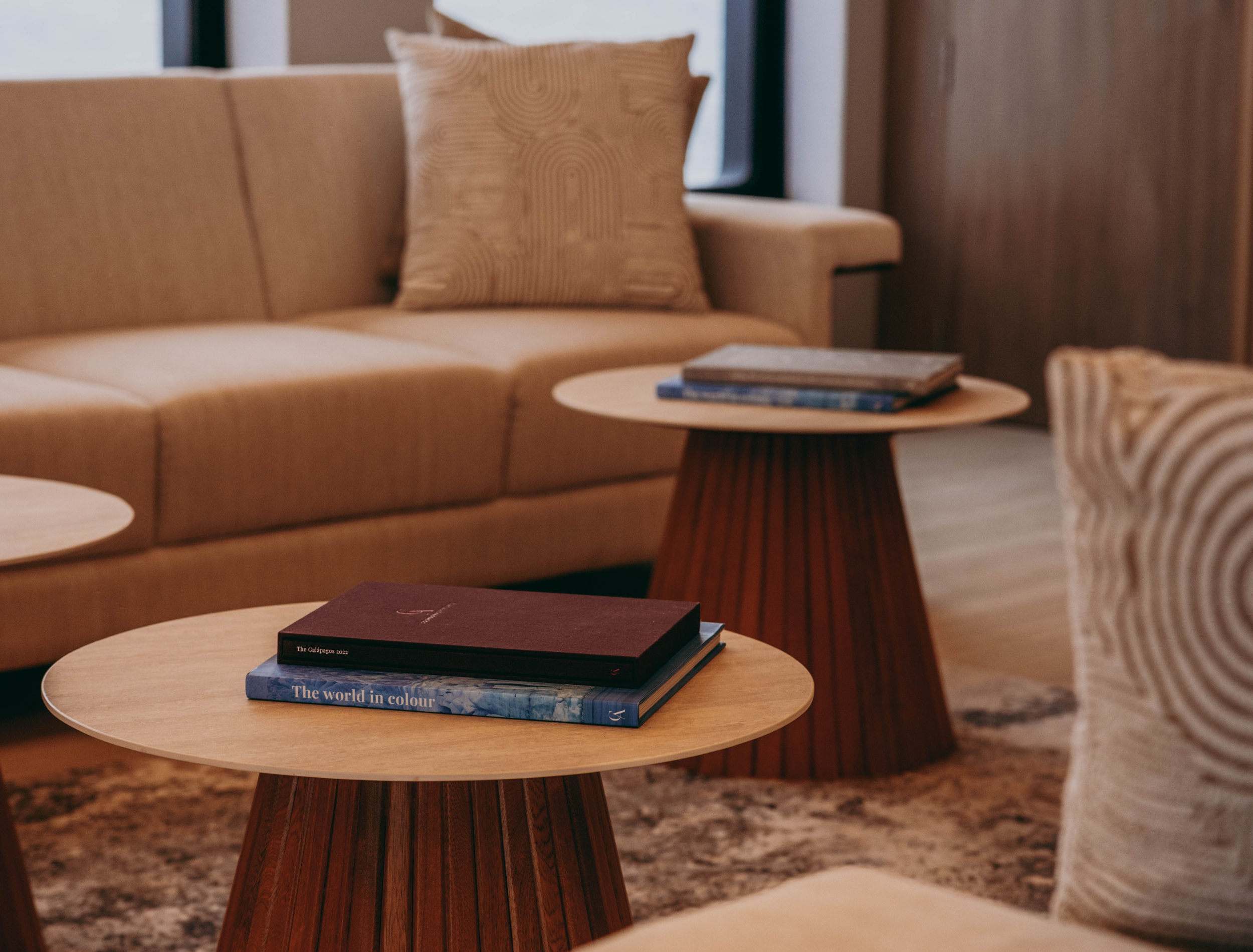 The interior is perfectly configured to offer guests communal spaces, intimate seating areas and a purpose-built spa. Aft on the main deck is a full beam lounge and bar capable of hosting all the guests on board. Forward on this level is a cosy library and full spa with hammam, sauna and treatment rooms.