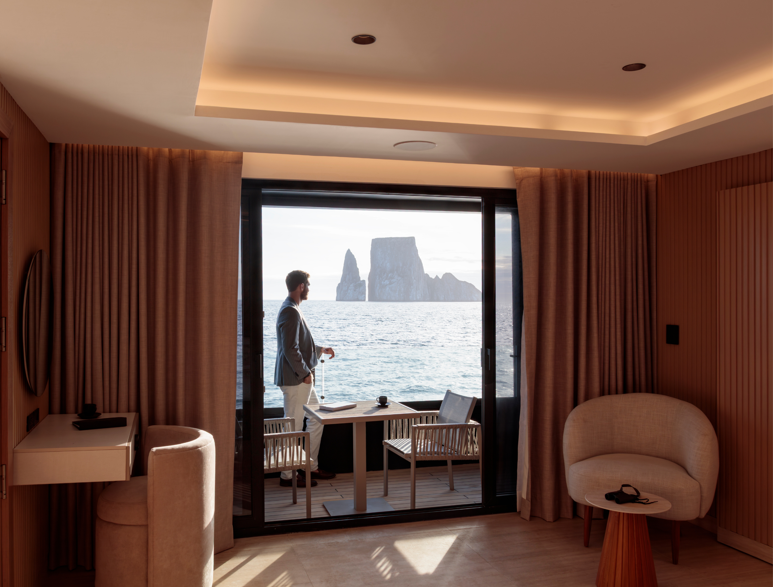 The exterior deck spaces offer a range of settings from which guests can make the most of the surroundings and take the opportunity to spot the unique wildlife of the Galapagos.