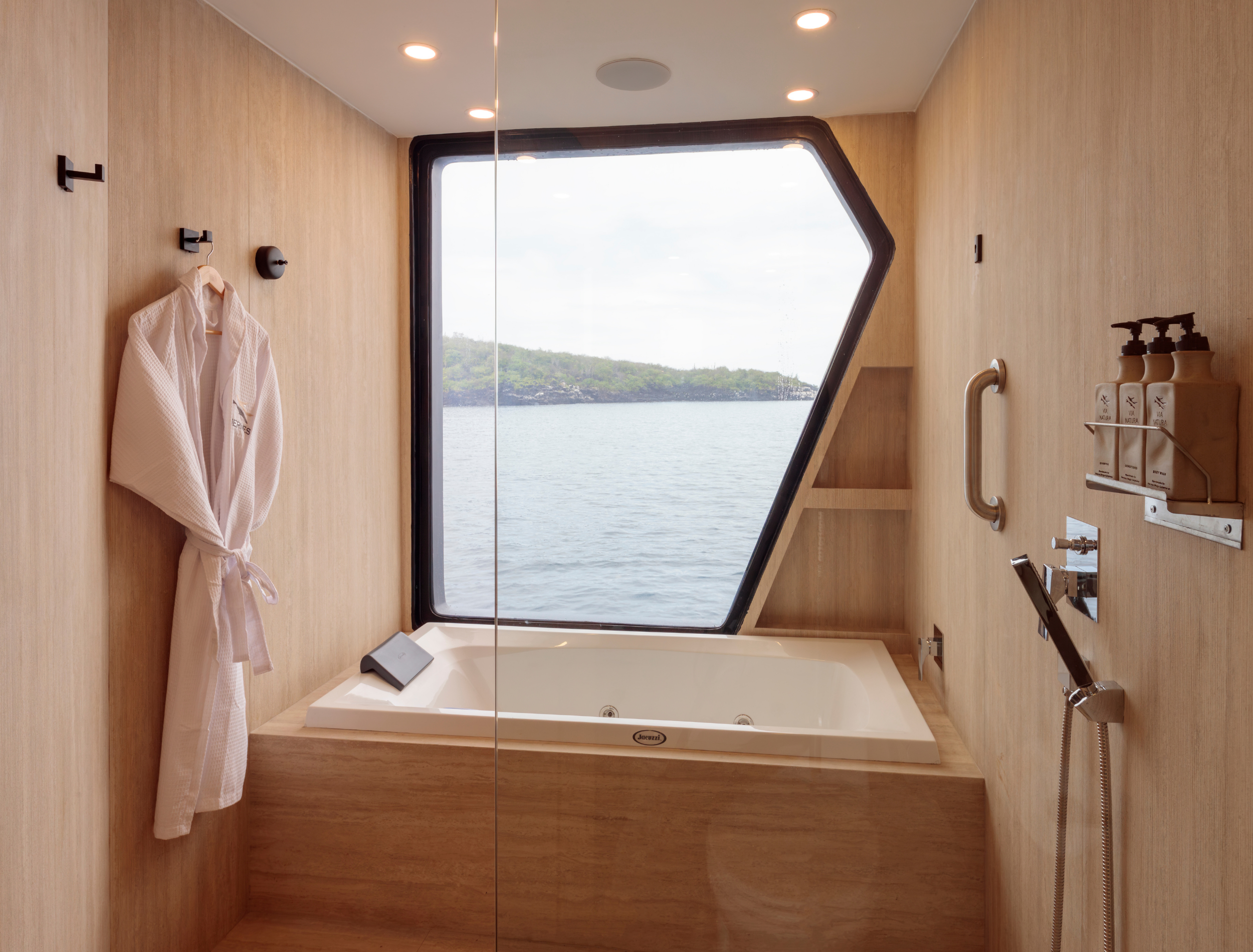 The lower deck offers yet more relaxing seating where guests can unwind before heading down to the water’s edge platforms to join the tenders for an excursion up close to the wildlife.