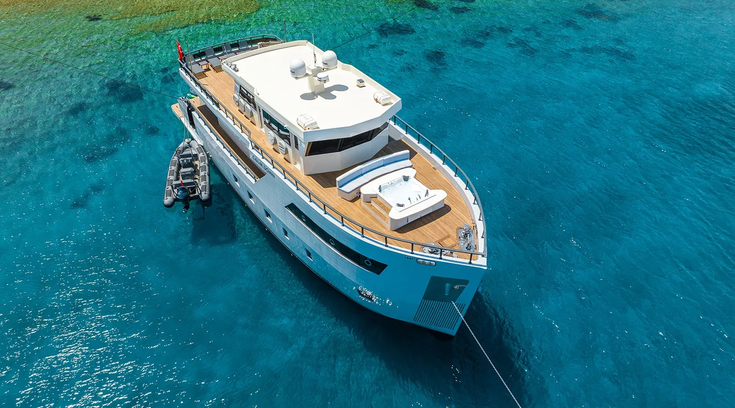NOTABLE FEATURES OF CALM DOWN: ~Explorer style flybridge design ~Deck jacuzzi ~Al fresco dining ...