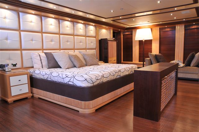 There is a large master suite with a King size bed, dresser, study, and ensuite. This cabin benefits from direct access to the office equipped with a computer, 42'TV with Dolby surround sound, DVD and bar/fridge. The VIP cabin is located on the lower deck and has a King size bed, dresser, TV set and ensuite facilities.