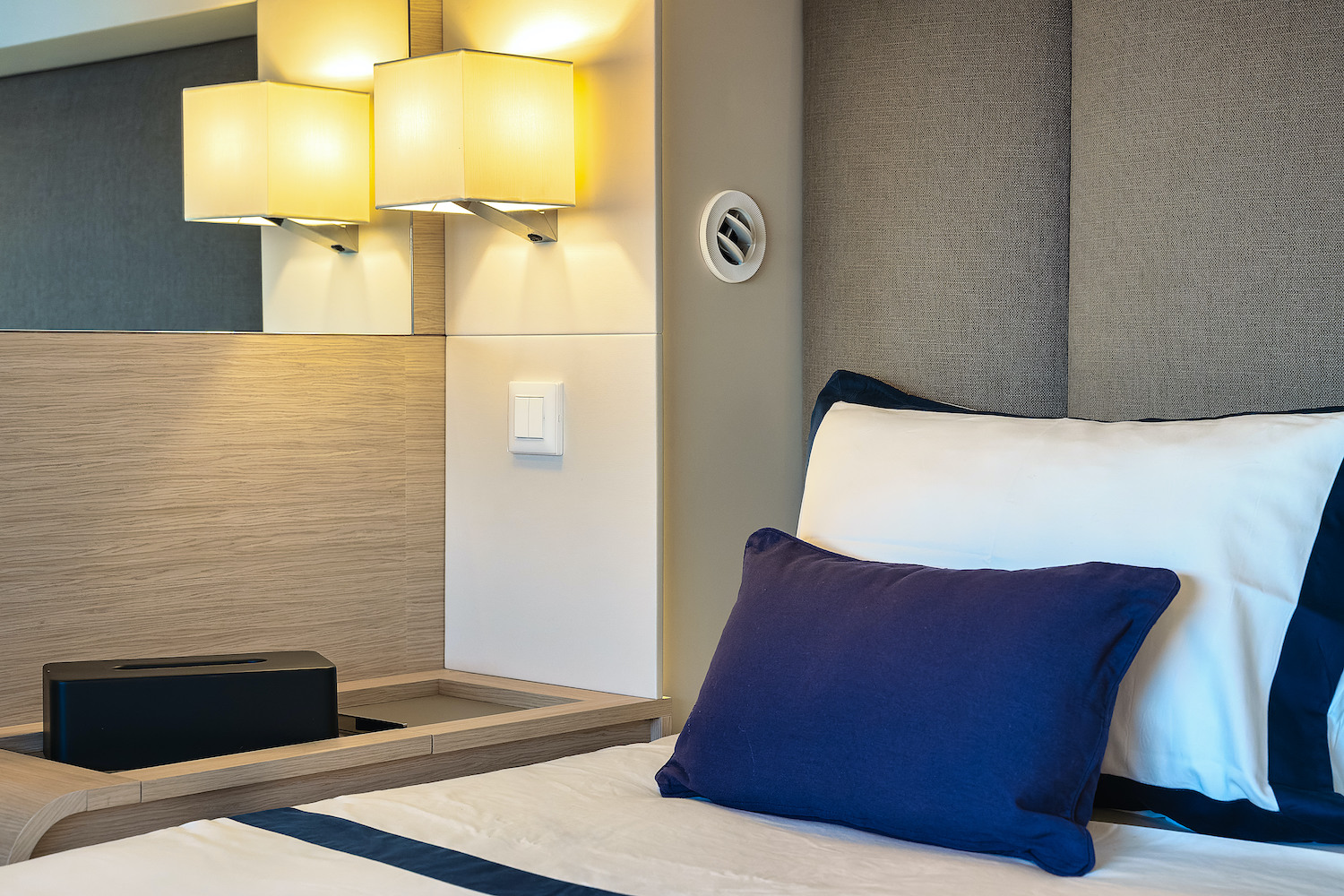 Safe and convenient access around the yacht is provided by wide side decks. On the aft cockpit there is a flexible dining table with corner sofa, stools plus additional seating overlooking the stern. Doors slide open into the main salon which creates one large entertainment space.