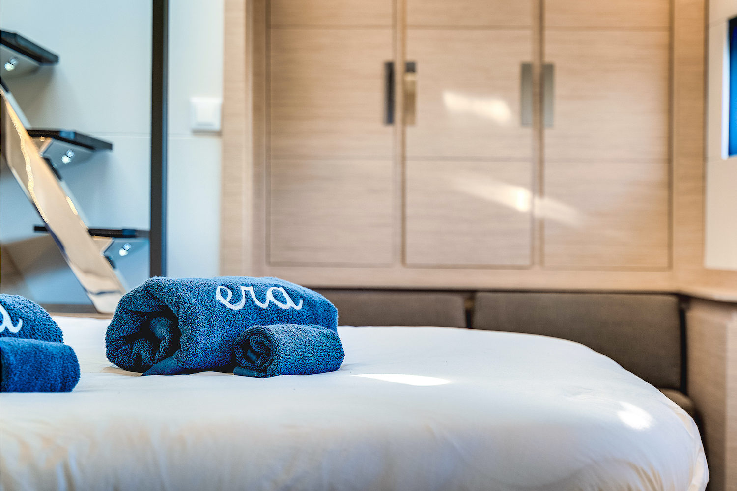 Sailing catamaran ERA is a 20.00m (65' 7") Fountaine Pajot Alegria 67 catamaran with spacious exteriors, light and open salon and four luxury ensuite cabins which can accommodate up to eight guests. She is packed with toys and charters will be hosted by three crew members.