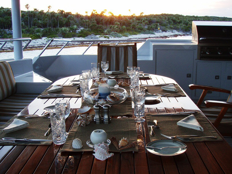The Aft deck has a BBQ and wet bar and offers El fresco dining for 10 guests. The aft deck can also be partially enclosed for weather. It is possible to embark and disembark Le Montrachet via the Stern Passerelle and there is also access via the side.