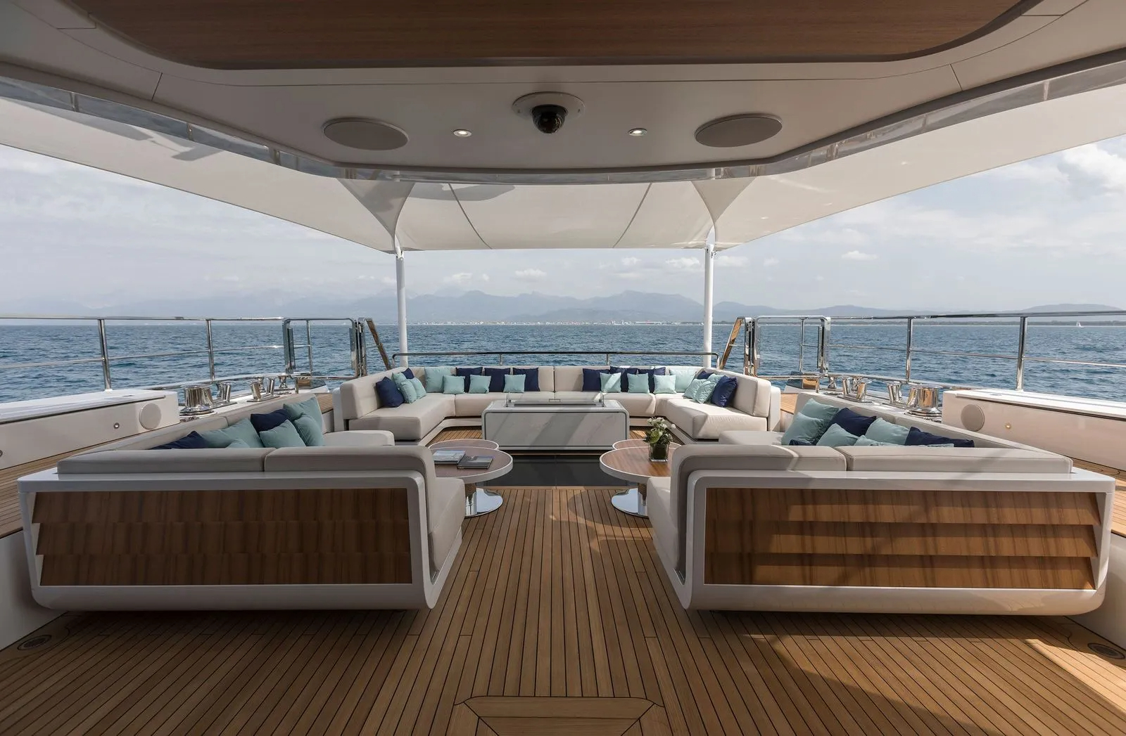 NOTABLE FEATURES OF MAVERICK: ~Huge infinity pool ~Sun deck jacuzzi ~DJ booth on sun deck ~Beach club with fold out terraces on three sides ~Main deck master with private balcony ~At anchor and underway stabilisers ~Air ...