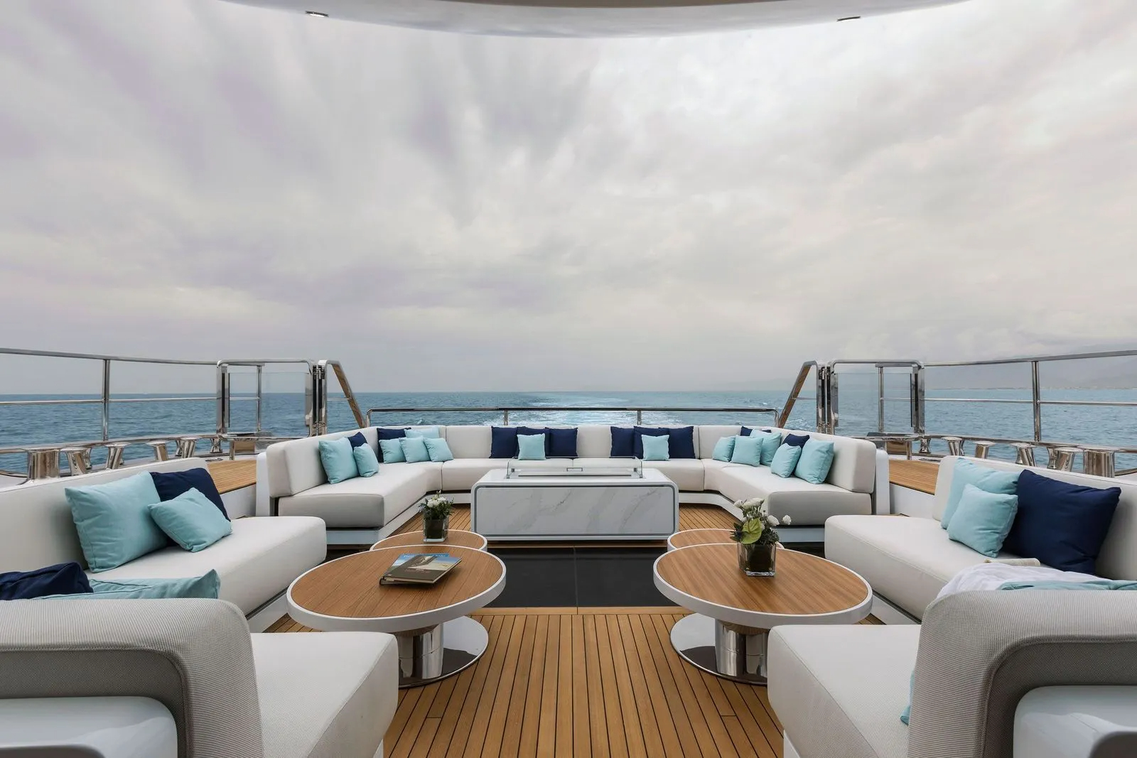 NOTABLE FEATURES OF MAVERICK: ~Huge infinity pool ~Sun deck jacuzzi ~DJ booth on sun deck ~Beach club with fold out terraces on three sides ~Main deck master with private balcony ~At anchor and underway stabilisers ~Air ...
