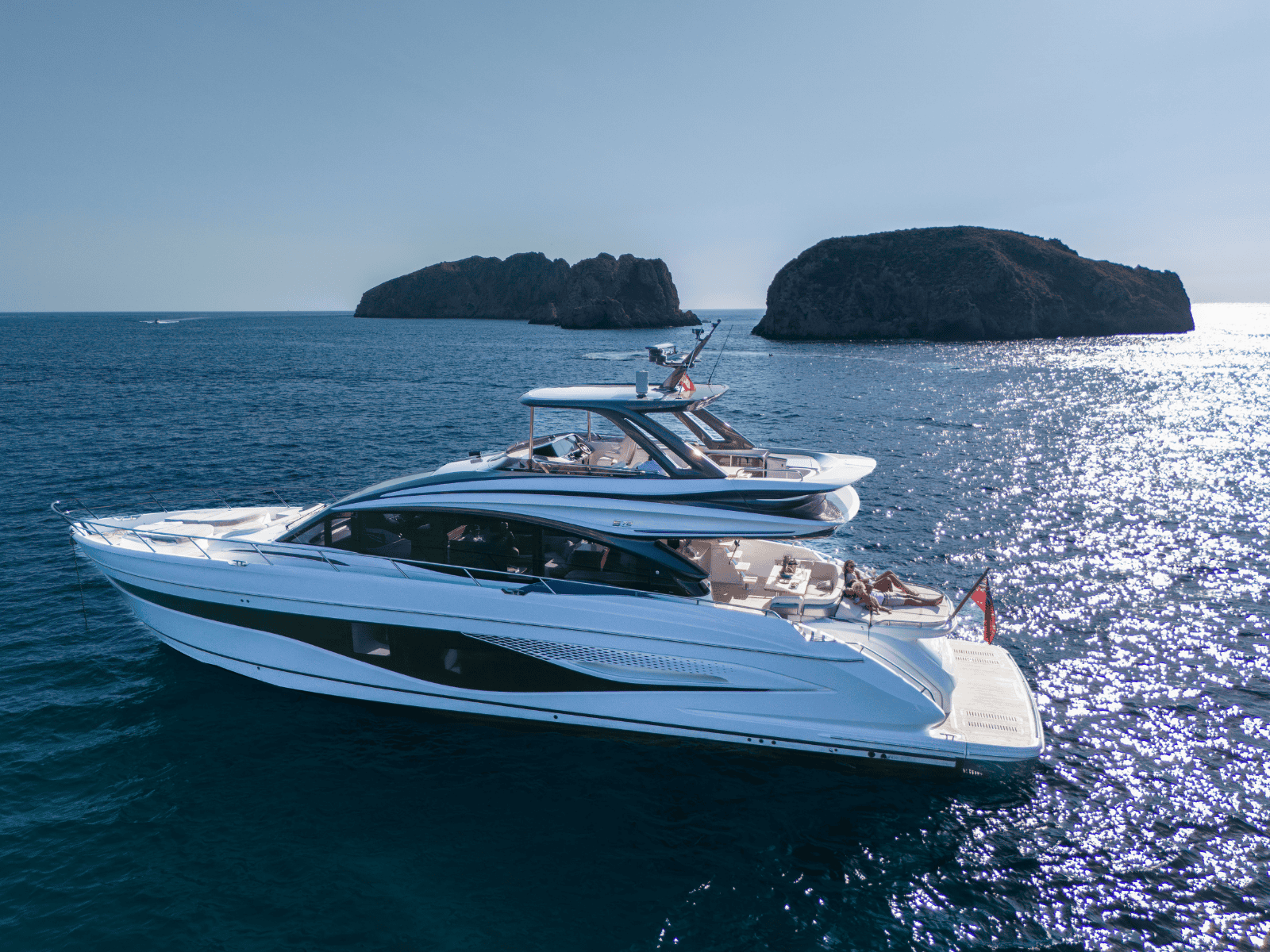 The foredeck offers more sunbathing space on two sun pads and seating on a u-shaped sofa – a perfect spot for taking in the forward views and relaxing with a cocktail while underway.